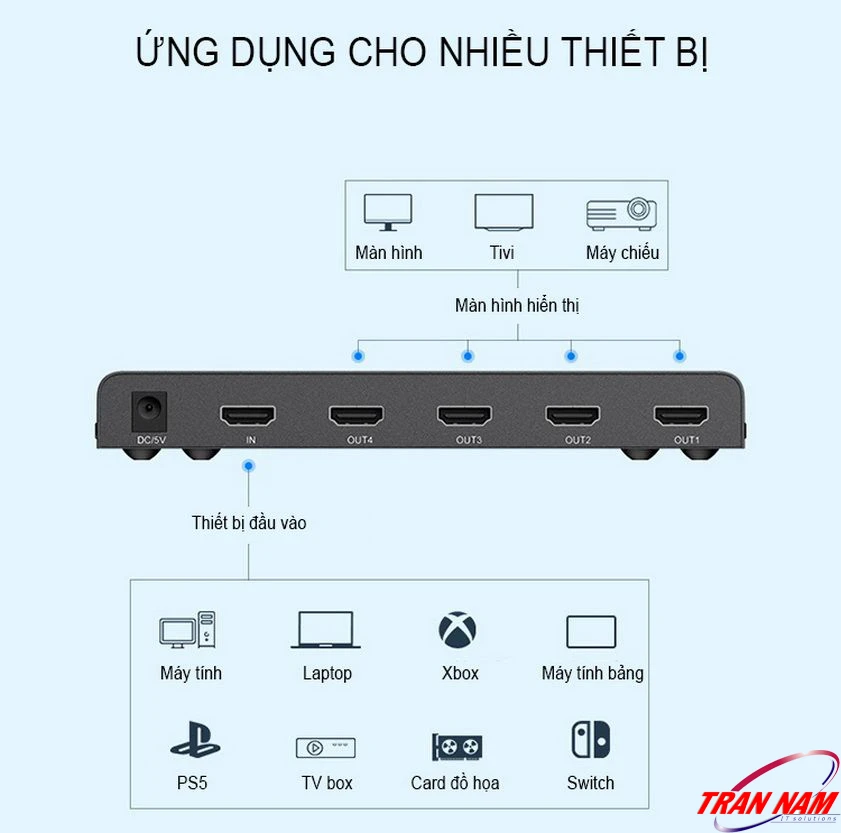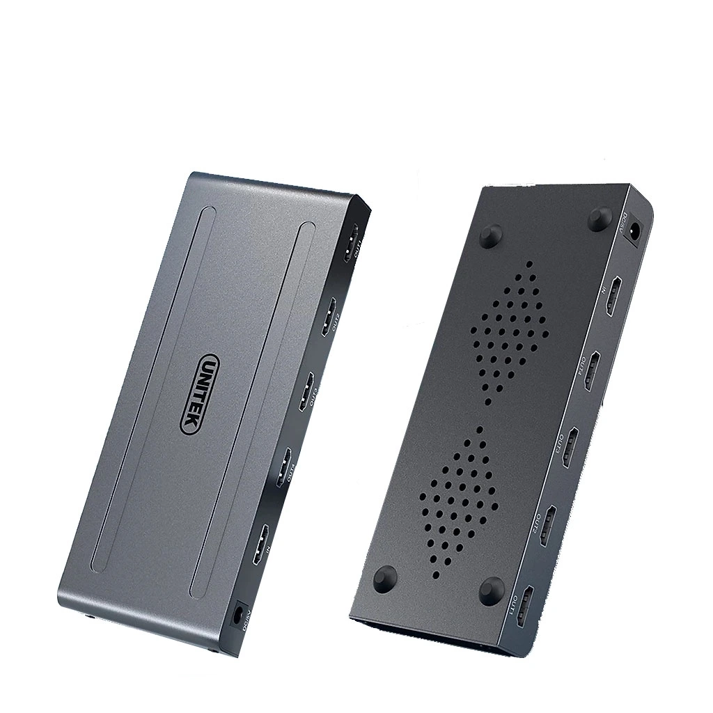 Bộ chia Cổng HDMI 1 vào 4 ra Unitek V131A là thiết bị giúp nhân bản tín hiệu hình ảnh từ một nguồn HDMI ra 4 màn hình giống nhau mà không giảm chất lượng. Nói dễ hiểu, nếu bạn có một laptop hoặc đầu phát, bạn có thể hiển thị hình ảnh cùng lúc lên hai TV, máy chiếu hoặc màn hình lớn, cực kỳ tiện cho phòng họp, lớp học, showroom hay trình chiếu quảng cáo.