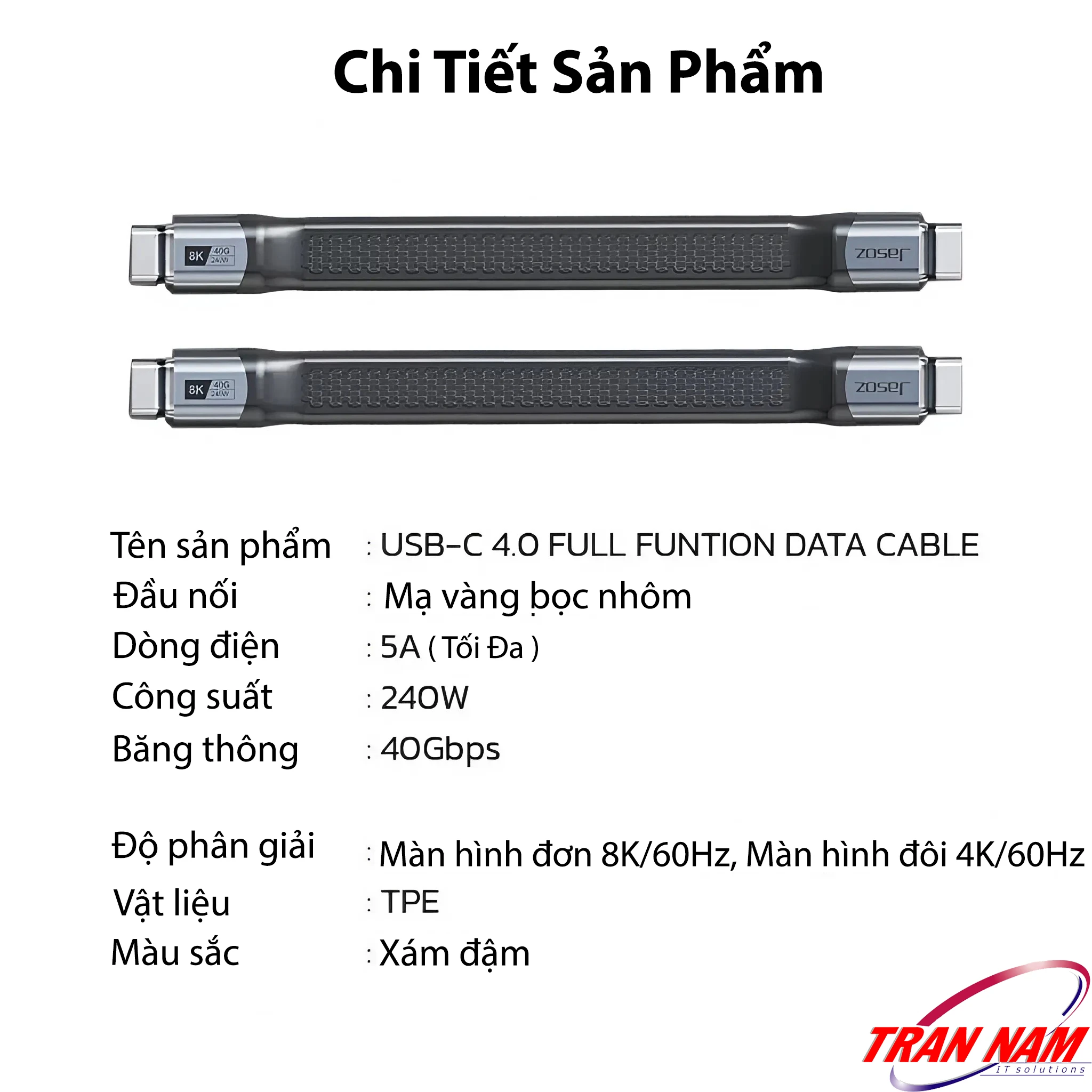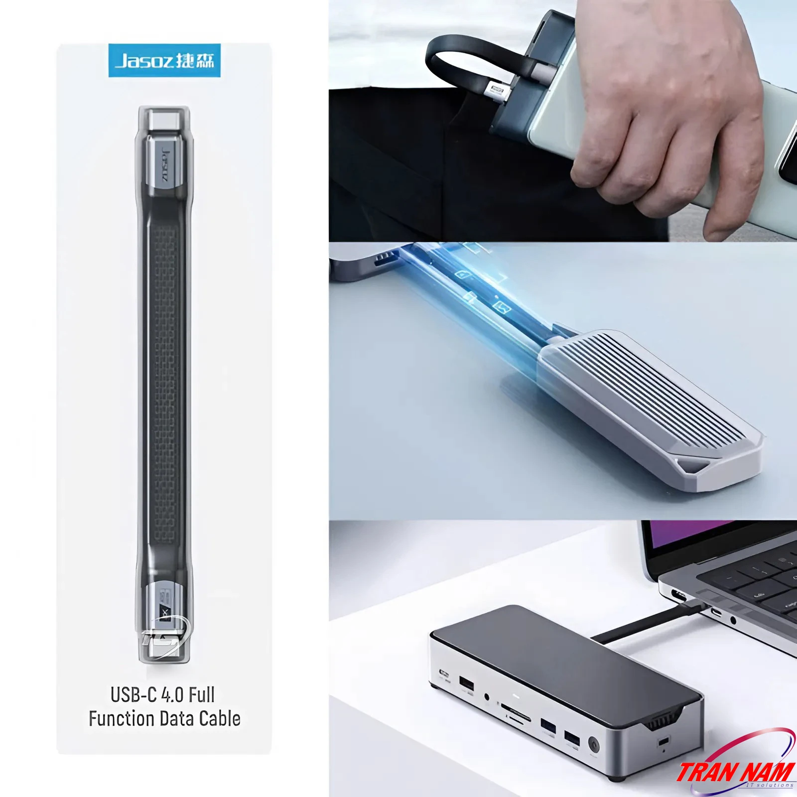 Cáp C to C USB4, hay còn gọi là cáp USB-C to USB-C chuẩn mới nhất, chính là giải pháp kết nối tốc độ cao mà bạn đang tìm kiếm. Nói dễ hiểu thì đây là loại cáp sạc USB4 vừa sạc nhanh, vừa truyền dữ liệu siêu tốc, lại còn hỗ trợ xuất hình ảnh 8K sắc nét. Với phiên bản Jasoz T-D223 dài 13cm, bạn có một lựa chọn gọn gàng, mạnh mẽ, phù hợp cho cả MacBook, laptop, smartphone lẫn SSD rời. Bạn thấy đó, chỉ cần một sợi cáp nhỏ thôi nhưng nó có thể thay thế nhiều phụ kiện khác.