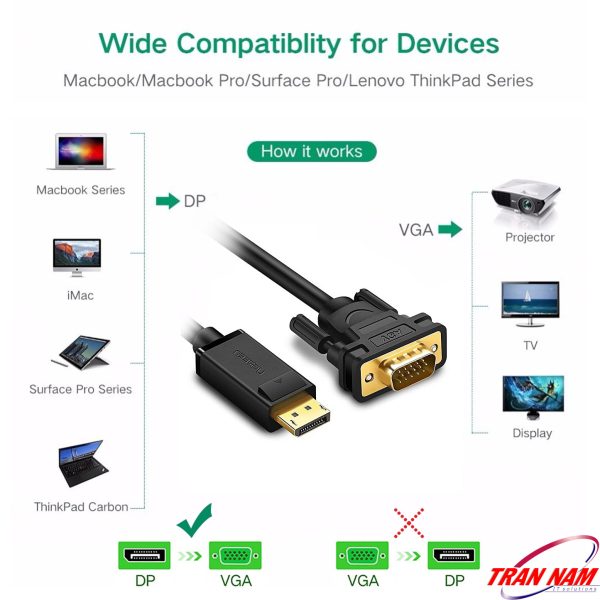 Hãy là người đầu tiên nhận xét “Cáp Chuyển Displayport Sang VGA (Dương) Dài 3M Ugreen 10236”