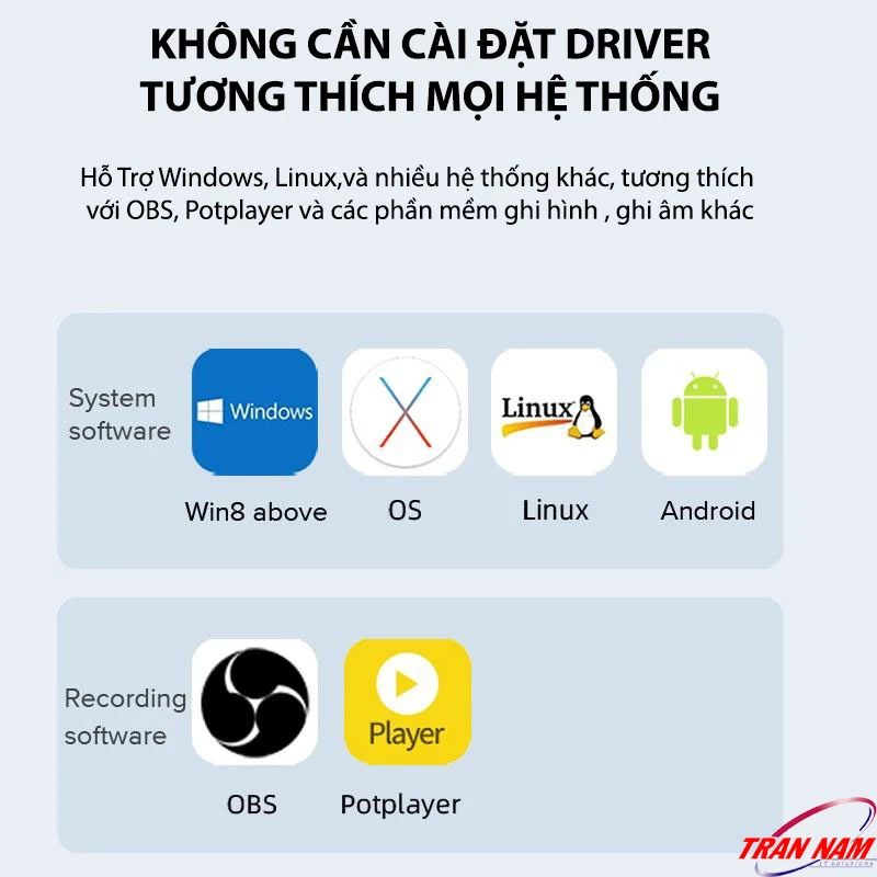 Cắm vào là chạy ngay (plug & play), không cần driver phức tạp. Hỗ trợ Windows, macOS, Linux, Android, iOS, và làm việc mượt mà với OBS Studio, XSplit, VLC, Potplayer, QuickTime Player… vốn là bộ công cụ quen thuộc của streamer và giáo viên.Thiết kế bền chắc – hợp kim nhôm, cổng mạ niken
