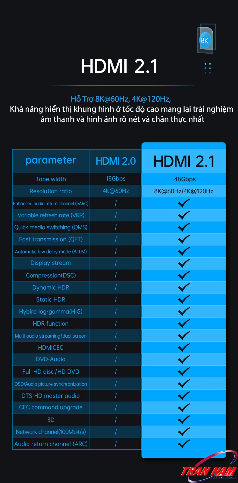 Chuẩn HDMI 2.1 Băng Thông 480Gbps