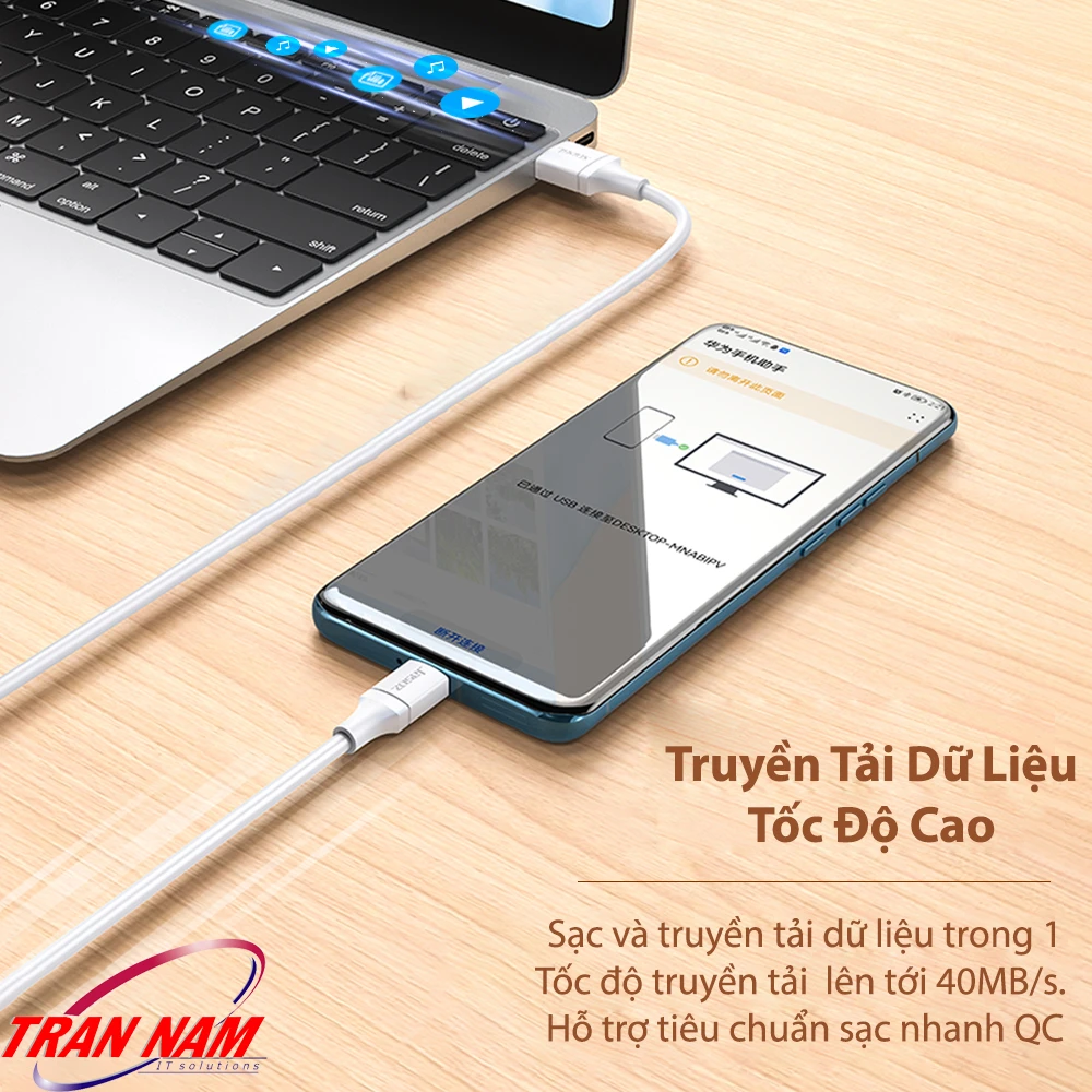 Có. Ngoài sạc nhanh, cáp còn hỗ trợ truyền dữ liệu chuẩn USB 3.0 → USB-C, giúp copy nhạc, ảnh và video giữa điện thoại và máy tính nhanh chóng, ổn định.