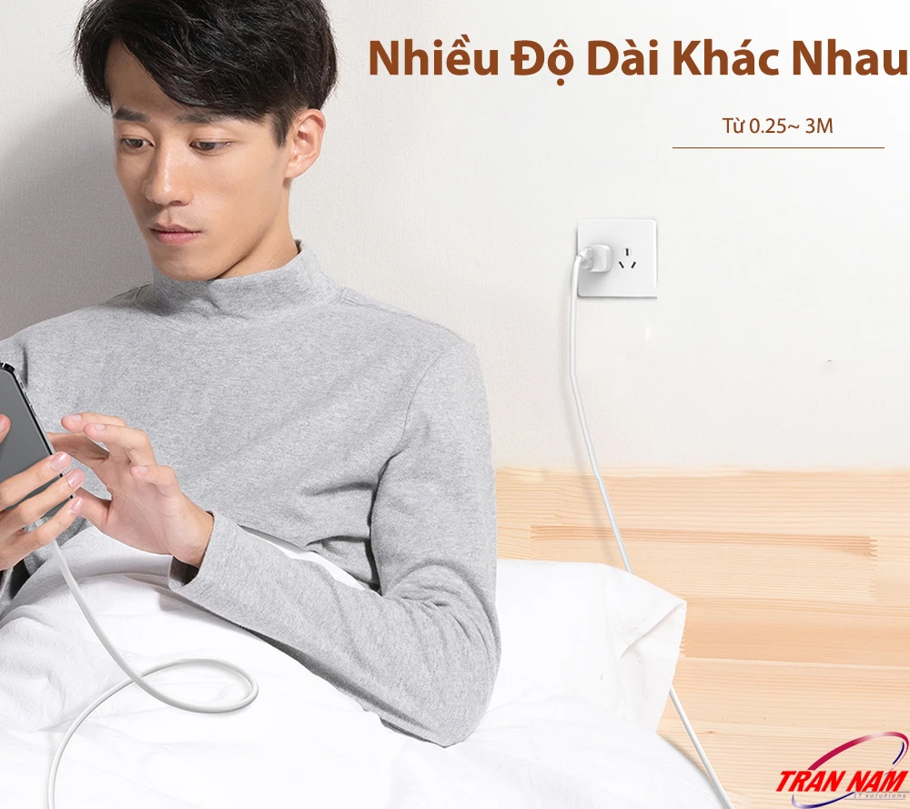 Phiên bản ngắn 0.5M, rất gọn gàng, lý tưởng để sạc pin dự phòng hoặc khi dùng với adapter đặt ngay cạnh thiết bị. Độ dài ngắn giúp giảm hao hụt điện năng, tốc độ sạc ổn định, thích hợp cho người dùng thường xuyên di chuyển.