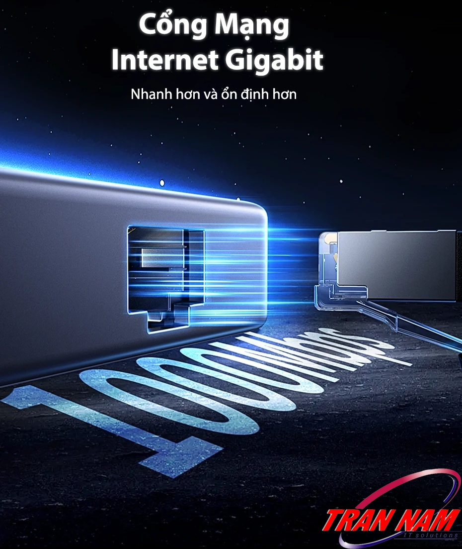 Hub tích hợp Ethernet 10/100/1000Mbps, giúp đảm bảo tốc độ truyền tải mạng cao và ổn định hơn Wi-Fi, đặc biệt hữu ích cho họp trực tuyến, livestream hay chơi game online.kèm màn hình LED trên thân hub hiển thị 3 trạng thái hoạt động gồm: kết nối, truyền dữ liệu và sạc PD. Ánh sáng dịu, tinh tế, tạo cảm giác thân thiện và hiện đại, giúp bạn biết chính xác hub đang ở chế độ nào chỉ trong một ánh nhìn.